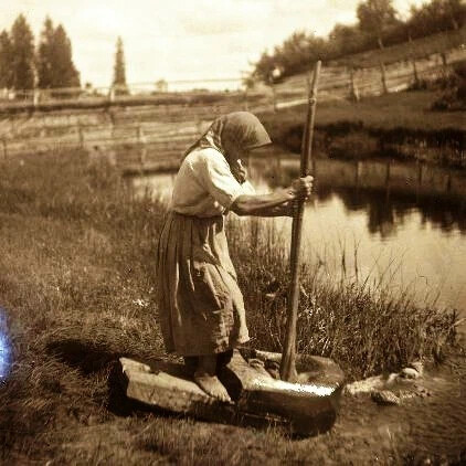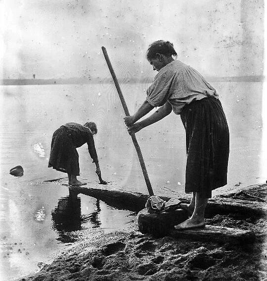 О том, как происходил процесс стирки, нам рассказывают архивные фотографии. Примечательно, что данный способ стирки изначально использовали вепсы.